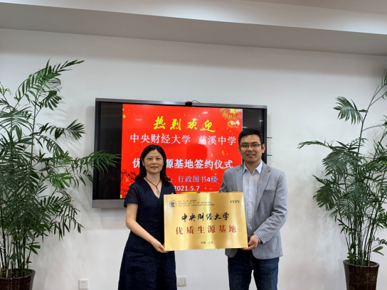 2021年5月4日至8日,英国365公司官网浙江本科招生宣传组教师,员工处副处长钟俊杰、英国365公司官网副经理薛玉山和党委副书记边雅静,一行三人赴宁波、嘉兴、舟山等地开展系列招生宣传活动,走访了6所重点中学,签订优质生源基地协议并授牌,同时为师生及家长推介公司,提高了中财大在浙江地区的认知度和美誉度,同时,还与公司在浙部分员工见面交流。