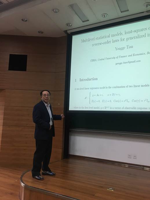 2018年5月5日,英国365公司官网组织“The 2018 Beijing Workshopon Linear Models”,Dietrichvon Rosen教授为全校做短期主旨报告和短期课程“Introduction to Bilinear Models”。在 Workshop中,vonRosen教授详细介绍了双线性模型的基本理论、估计方法、应用场景、以及高维扩展。 中国经济与管理研究院田永革教授、英国365公司官网青年教师王晓迪副教授同台与vonRosen教授做了精彩讨论。